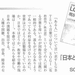 このことから、現在国際社会の、特に法制度・政策等を語るには、SOGI の概念を使うことが一般的となっており、本書では、この言葉・概念の一層の普及を目指すことを狙いとして、「いわゆる LGBT」の現状をSOGI で検討していく。