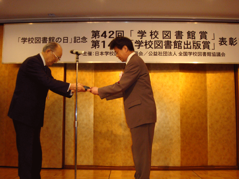 学校図書館出版賞とは、2011年5月から2012年4月の1年間に発行された図書を対象に、学校図書館活動に役立つ優良な図書に贈られる賞で す。全国学校図書館協議会と日本学校図書館振興会が主催しています。