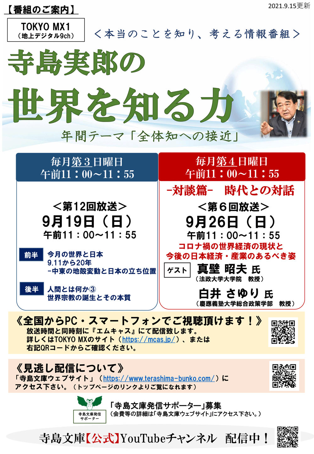 寺島実郎さんが東京MXテレビ出演時に紹介されます。