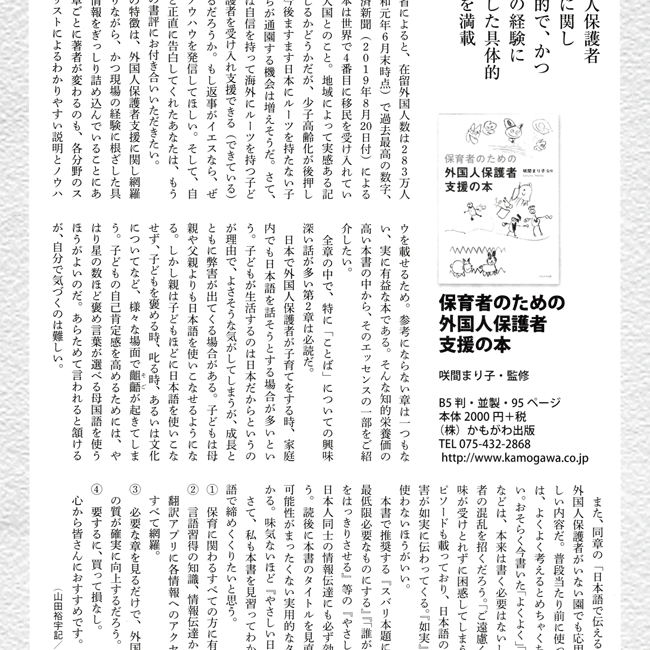 「母語と日本語の使い分け」は具体的で、外国人保護者にとって心強いアドバイスだと思います。
