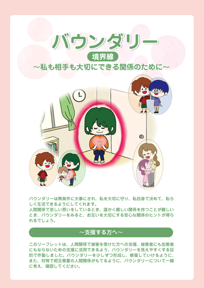 人間関係において被害を受けてきた子ども・若者への支援、被害者にも加害者にもならないための支援に取り組む方へのやさしいバウンダリー支援の手引です。